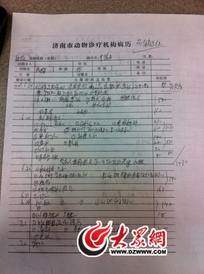 11月9日,大众网记者采访了在齐鲁民声网发帖的于女士,她向大众网记者讲述了大猫在振牧宠物医院治疗的过程。